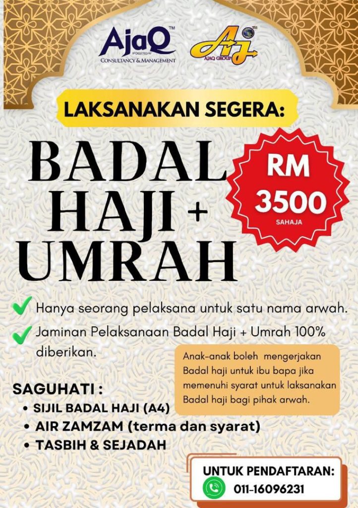 Upah Haji @ Upah Umrah ini dilaksanakan oleh para Ustaz, Pelajar, Mutawwif, Haji² & Hajjah² yang berpengalaman luas mengerjakan Ibadah Haji dan Umrah yang bermastautin di MAKKAH AL-MUKARRAMAH.